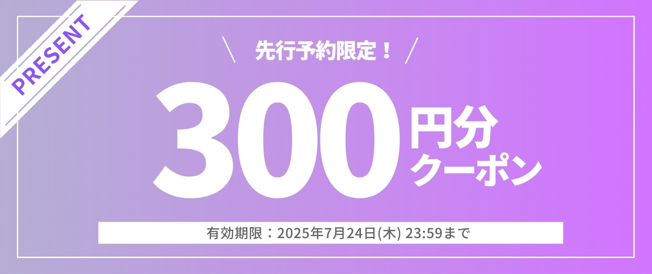 クーポン名称「【対象商品限定】300円クーポン」としてプレゼントいたします。