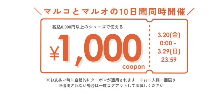 税込8,000円以上のKesouシューズ(1点あたり)でご利用いただける1,000円分クーポンをプレゼントいたします。