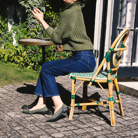 Kesou Pumpsの場合は、ポインテッドトゥではあるものの、やわらかいニット編みでできているため多くの方に履いていただきやすいかたちになっています。