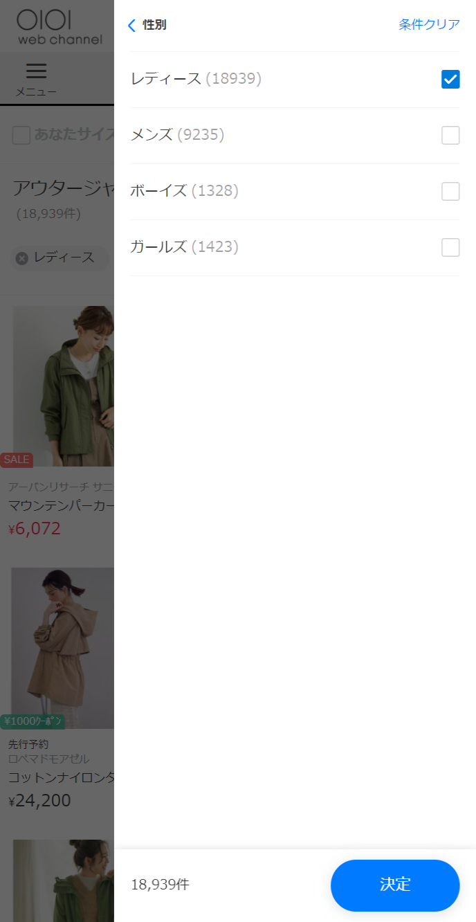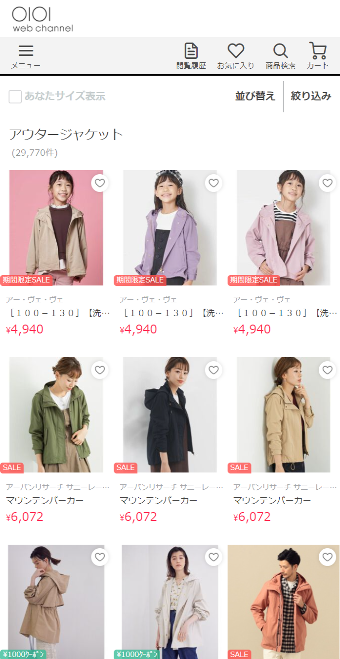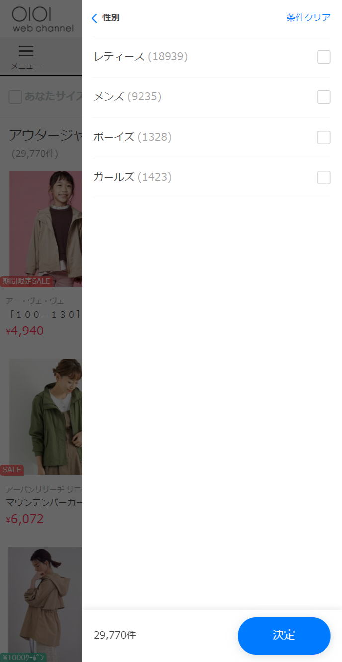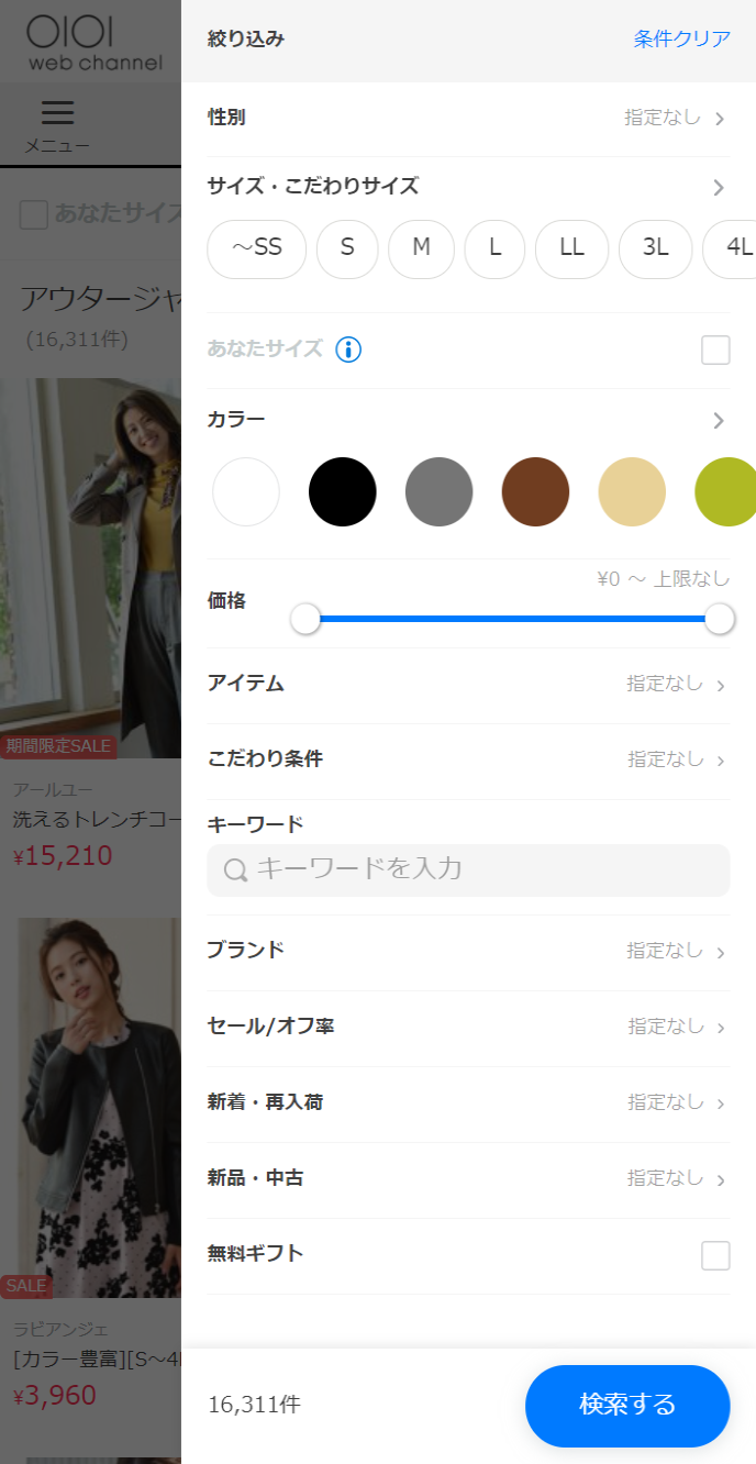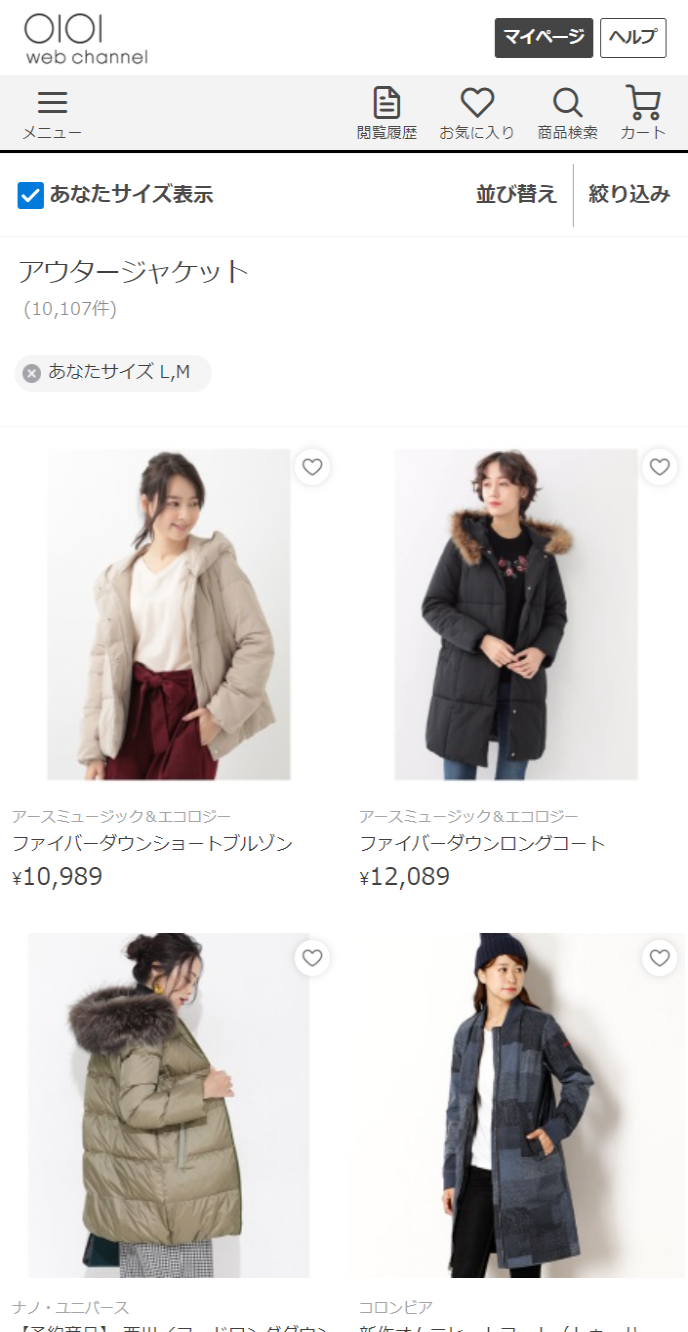 あなたサイズをONにすれば、お探しのサイズで在庫のある商品をすぐに検索できます。