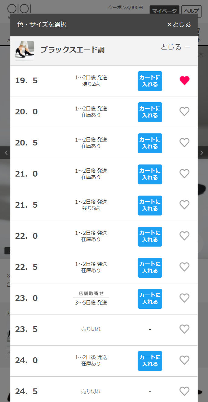 欲しい商品が見つかったけど、サイズがなくてがっかり...
