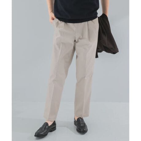 やや細身のテーパードシルエットデザインなので、足がよりスマートにみえます。ストレッチ性に優れた生地を使用したワンタックタイプなので、移動や動きが多い職場でも活躍してくれるでしょう。ビジネスコーデはもちろんカジュアルコーデにも合わせやすいアイテムです。