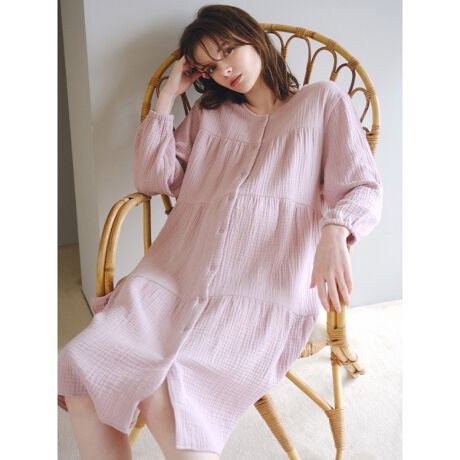 この商品の詳細はこちらこのブランド×アイテムの一覧はこちら意外と汗をかいてしまう春にぴったりのトリプルガーゼ素材のワンピースパジャマです。前開きなので、入院中も便利。