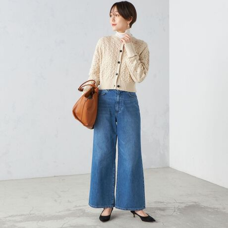 コンパクトなカーディガンであれば、スカートと合わせることでエレガントな雰囲気を出せます。ボリューム感があるカーディガンとデニムを合わせれば、カジュアルでありながらも大人かわいいスタイリングを楽しめます。