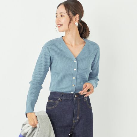 カーディガン本来のデザインとされるVネックカーディガンは、さまざまな商品が販売されています。生地やボタンの種類などでシルエットや印象が大きく異なるため、お気に入りの1枚をぜひ見つけてください。