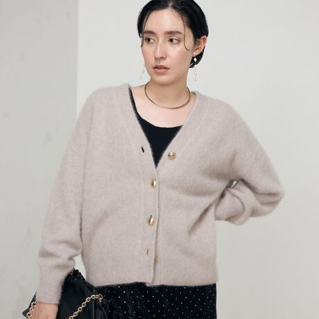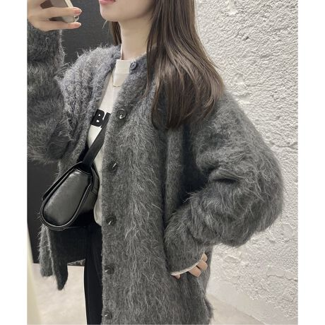 シャギーニットカーディガンは、毛足が長いカーディガンです。ニットに起毛加工を施すことで、ふんわりと暖かい着心地となっています。毛足が長くボリュームがありますが、軽くて肌触りが良い点が特徴です。