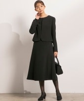 ジャケットはハイウェスト切り替えで、脚長効果ですっきりとした装いに。袖はスリット入りで長さ調節できるのもポイントです。