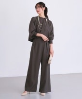 【S〜3L】バックパールフレアトップス&テーパードパンツセットアップ