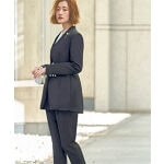 華やぎを与えるパールと、鮮度のある着こなしが叶うペプラムジャケットパンツスーツ。 構築的なペプラムシルエットがスタイリッシュでハンサムなジャケットを、大粒パールとノーカラーで仕上げ女性らしい印象をプラスしました。