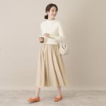 1枚でコーディネートが完成する便利なワンピースを、フェイクスエードコートとあわせてキレイめコーデにしました。動くたびにスカートがふわりと広がって、可愛らしさも演出できます。