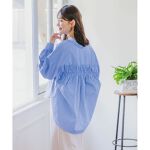 バックギャザーブラウスをデニム合わせで春のお出かけコーデに!襟元のVネックと程よいオーバーサイズ感が抜け感と程よい女性らしさを演出してくれるブラウス。バックにギャザーデザインがあるので1枚で可愛く着れます。ボトムス次第でカジュアルにもオフィスにも使えるオススメアイテムです◎