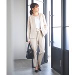 〈ノーカラージャケット・リボンベルトパンツ 3点セット〉 シンプルなノーカラージャケットとリボンベルト付きパンツで、スタイリッシュで可愛らしい印象に♪ 子どもの行事やオフィスでも活躍する、大人可愛い万能スーツです。