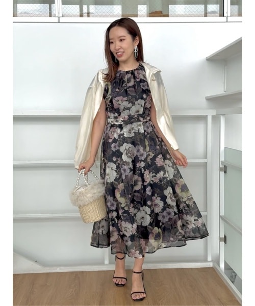 透け感のあるライトアウターは春らしい抜け感をプラス。上品な光沢とシルエットが、ワンピースの華やかさを引き立てます♪