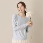 ニットとチュールの異素材ドッキングジレと袖がシアー素材のラメインナーを合わせて、春を感じさせるシアー感のあるコーディネートにしてみました。