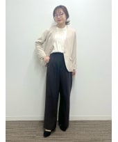 ニットとチュールの異素材ドッキングジレと袖がシアー素材のラメインナーを合わせて、春を感じさせるシアー感のあるコーディネートにしてみました。