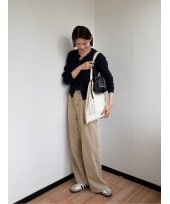 白ワンピにバッグとニットを締めカラーで合わせました! 春コーデをメリハリつけるのがオススメです!
