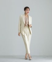 夏のオフィスコーデにかかせない、さらさら生地のクールタッチ機能付きジャケット&パンツ♪