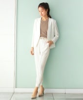 さらさらのクールタッチ機能付ジャケットに、とろぷり素材のテーパードパンツを合わせて、暑い日もリラクシーに過ごせるオフィスコーデ♪