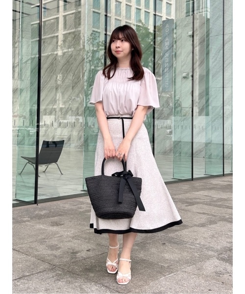 夏の通勤スタイルにぴったりなコーデに♪ サマーツイードのスカートが華やかに仕上げてくれます。