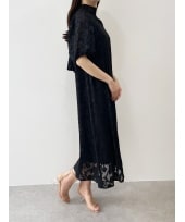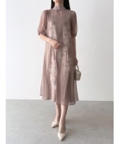 【165cm / L・ロング丈着用】 シフォンジャカードが程よい透け感と、立体感を演出してくれるバックリボンロング丈ワンピース。 結婚式の披露宴にはもちろん、二次会などのパーティードレスや謝恩会・同窓会など大切な日にもぴったり。