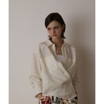 リネンタッチ素材でお作りした、オーバーシルエットシャツ。ゆったりオーバーなサイズ感で、暑い日でもさらりと気持ちよくお召しいただけます。普通に着るとやや長めのラウンドヘムですが、内側の隠しボタンを使ってやや短めのカシュクールデザインに変えられます。
