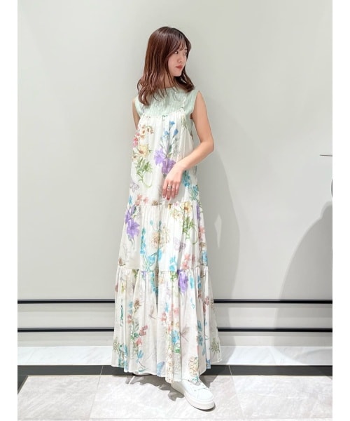 イタリアのインポート素材を贅沢に使った、ボリュームたっぷりでドラマティックなキャミソールワンピース。手描きのボタニカルと美しいカラーパレットが目を惹き、ふわりと柔らかな綿100%のボイル生地はガーゼのような気持ちの良い肌触りでずっと触れていたくなります。