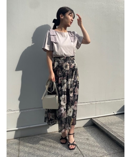 スカートは、大きめの花柄プリントでとても華やかです! ふんわり程よく広がるのがとても大人かわいいです?