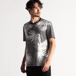 総柄Tシャツでのコーデ。今年の夏の主役になれるインパクト大の総柄Tシャツ!ジオメトリック柄にボタニカル柄を大胆に配置したインナーとしての存在感も抜群のアイテム!嬉しい接触冷感加工で夏にぴったりの一枚です