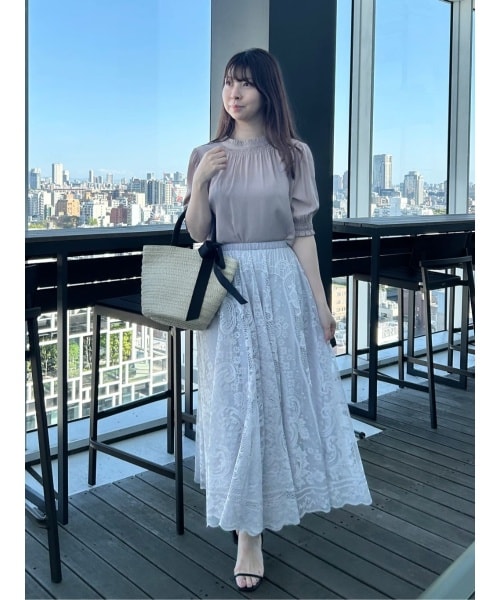 定番のブラウスにシルエットを華やかにしてくれるレーススカートがポイントに。