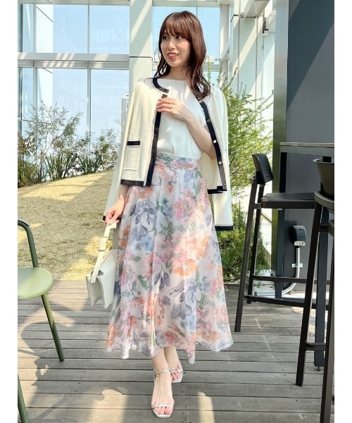 白×ピンクのモテコーデです? カーディガンの配色もポイント♪