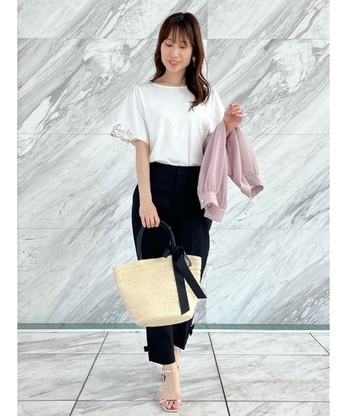 モノトーンなので羽織や小物で色味を足すのもおすすめ♪