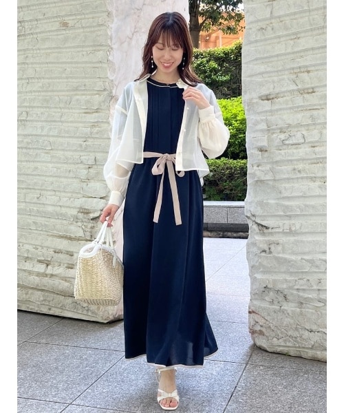 ネイビーにピンクの配色の大人可愛いワンピースです!