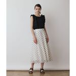 ニットはコンパクトめなシルエットながら体に密着しすぎない着心地、シアー素材が涼しげな印象、上品ながら華奢見えするデザインです。スカートは軽めのお素材、深めのタックを入れていることで動くたびに綺麗に揺れる華やかな一枚です。