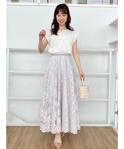 程よい肌見せのフリルブラウス。