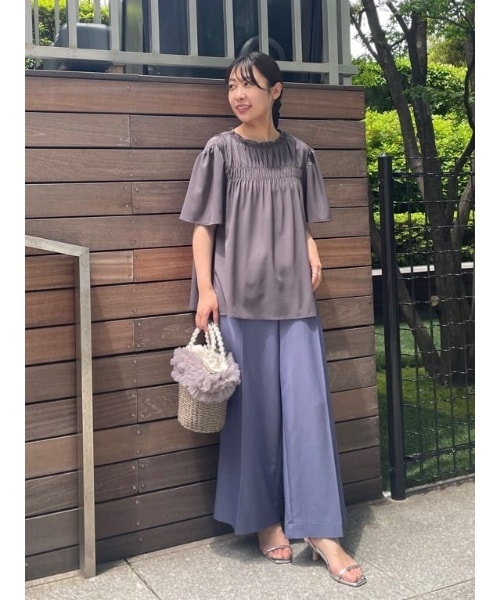 ブラウスの胸元のシャーリングデザインが女性らしく着映えて上品でした! デニムライクパンツは、一見カジュアルですが、落ち感がありキレイめな印象になりました!