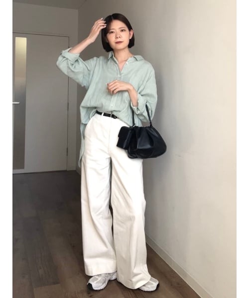 淡いカラーの時はバッグを黒で締めてメリハリを。 相棒の巾着バッグは2色買いしてしまうくらいお気に入りです。