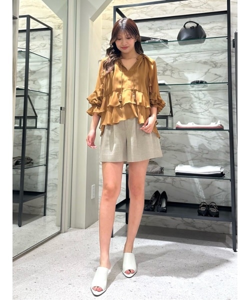 ブラウスは丈感が前よりも後ろが長めなのでバランスよく、安心してきていただけます。
