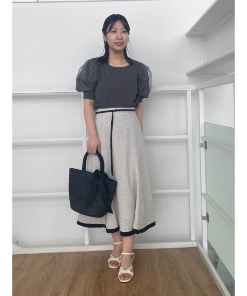 フレアスカートは、配色の裾と細ベルトが施されたデザインで、シンプルながらも存在感抜群です!