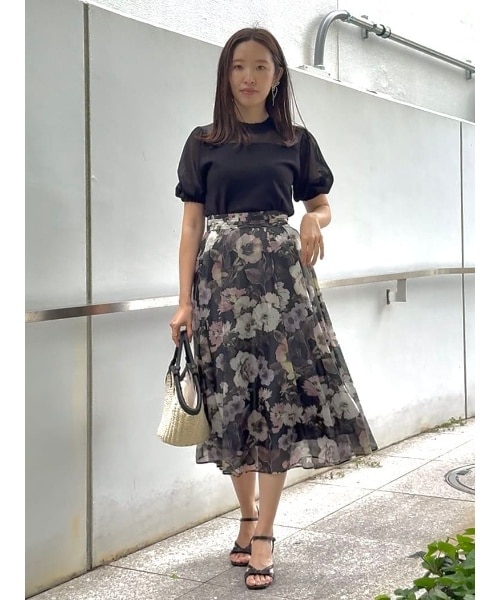 シアーブラックのトップスは、透けすぎない程よい肌見せが上品?パフスリーブの立体感が女性らしさを引き立て、華やかな存在感を放ちます♪