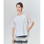 透け感の楽しめるお洒落なレーストップスです。中にインナーを着てお召しいただけ、いやらしくない上品な透け感が大人の方に着ていただきたいデザインです。裾はサイドが長めに設定されて、動きがあるのが個性的で1枚でお洒落に見えます。