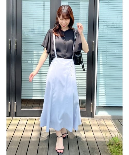 着回しが効くサス付きのスカート。 インナーによって雰囲気を変えて楽しんでいただけます◎