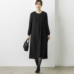 25年夏の新作ブラックフォーマルワンピース 着やすい「前ファスナー」仕様 お自宅で洗える「ウォッシャブル機能付き」 袖は薄く透け感のあるジョーゼットを利用して、軽やかなワンピース