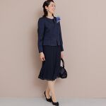 ジャケットとドレスを着まわしてさまざまなオケージョンに対応できる便利なセット。ノーカラーデザインのジャケットは、表面感と微光沢が高級感のあるグログラン素材を使用。ドレスは上身頃をラメのない上品なレース、スカートは足元を綺麗に見せる裾にかけて消えるプリーツを施しました♪