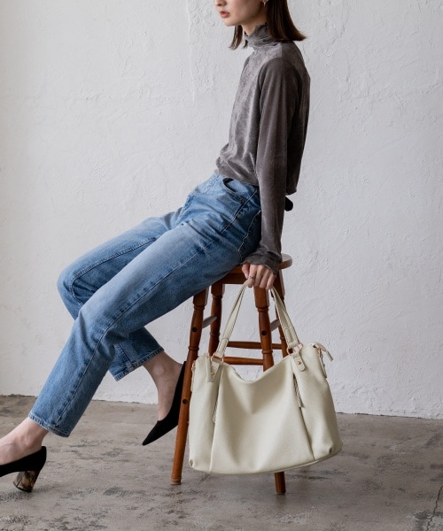 【BAG】フェイクレザーを使用し、くったりとした美しいフォルムはそのまま、収納ポケットが計8つと、機能面が実用的!