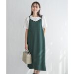 麻調のさらりとした風合いが魅力のキャミワンピースと、シンプルな天竺Tシャツのセット。
