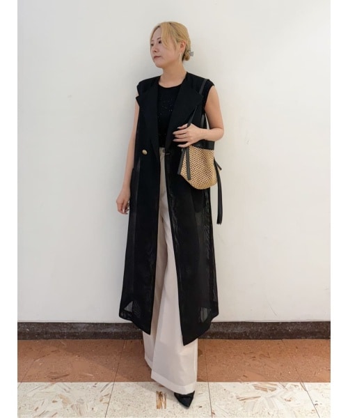 カラミ織で作られたシアー感が程よいロングジレ。軽い素材で歩いた時にふわりと動きがでるのがポイント。ホワイト・ブラックの定番カラー展開で合わせやすく、シンプルなコーディネートに羽織るだけで新鮮なシルエットにしてくれる一枚。