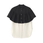 ノースリーブのブラウスの上に、ケープがレイヤードされた1枚で印象的なデザインブラウス。バイカラーと単色の2色展開です。肩周りが窮屈でなく、二の腕部分を美しく隠してくます。そして肌離れも良く、着心地の良いアイテムです。