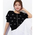たっぷりリボンがポイントのニット。 細めの小さめリボンで甘くなりすぎず着ていただけます。 シンプルコーデの羽織りとしても◎。