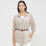 上質な素材を活かしたシャツブラウスです。裾に前後差をつけ、アウトした着こなしもきれいなシルエットになるように仕上げました。シャツとして一着でリラックス感のあるスタイリングのほか、カーディガンのように軽く着こなすスタイリングもおすすめです。