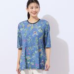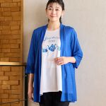 【大きいサイズ/L〜3Lサイズ】日除けに便利なカーディガンに花柄のインナーを合わせたお出かけスタイル。ブルーの陰影感が涼やかですね。